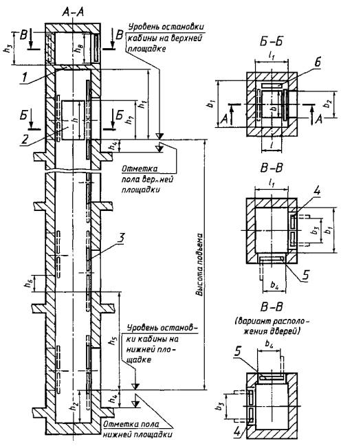 Размеры дверного проема шахты соответствуют указанным в табл. 1 СТ СЭВ 4326-83.