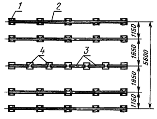 1 - опора; 2 - прогон; 3 - переносные рамки; 4 - пониженные опоры