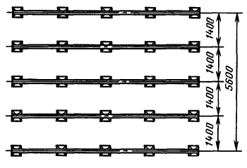 Схема подштабельных фундаментов для укладки пакетных штабелей