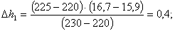б) изменение величины усушки (Dh1) в миллиметрах, приходящееся на величину разности между определяемым размером 225 мм и ближайшим меньшим табличным размером 220 мм, равно:
