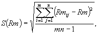 S(Rm) - среднее квадратическое отклонение результата измерения параметра Rm, мкм, вычисленное по формуле