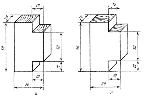 а - скалывание по тангентальной плоскости; б - скалывание по радиальной плоскости