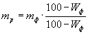 Массу партии картона mp в килограммах в зависимости от влажности вычисляют по формуле