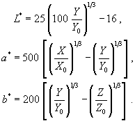 3. Координаты цвета L*, a*, b* в системе XYZ рассчитывают по формулам: