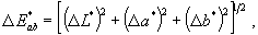 7. Полное цветовое различие  между двумя цветами - геометрическое расстояние между двумя точками, обозначающими местоположение сравниваемых цветов в цветовом пространстве CIELAB, которое рассчитывают по формуле