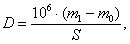 Показатель укрывистости (D), г/м2, вычисляют по формуле