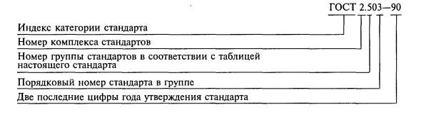 6.1 Обозначение стандартов ЕСКД производится по правилам, установленным в ГОСТ 1.0. Обозначение стандарта состоит из:
