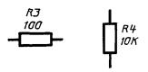 при указании номиналов резисторов и конденсаторов около их условных графических обозначений (черт. 4) не выполнять разделительную черту между их буквенно-цифровыми обозначениями и номиналами; обозначать К - единицу измерения сопротивления килоОм, МК - единицу измерения емкости микроФараду.