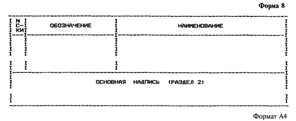Примечание. Допускается образовывать страницу формата А4 частью листа, ограниченной кромкой и осью симметрии бумажной ленты, при этом ось симметрии следует выделять знаками «вертикальная черта», «восклицательный знак», «звездочка», латинской буквой «I» (черт. 8, приложение 1).