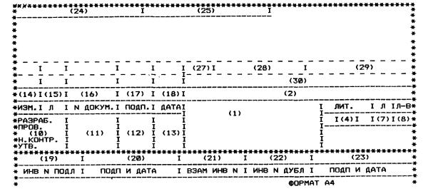 1. Допускается располагать дополнительные графы по ГОСТ 2.104, а также помещать содержащуюся в них информацию без нанесения граф. При этом допускается печатать слова сверху вниз. Графы 19 - 25 допускается также наносить штампом в поле подшивки на первом или заглавном листе, а на последующих листах эти графы не наносить.