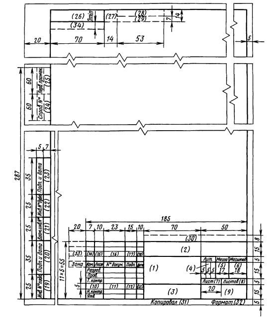 7. В графах основной надписи и дополнительных графах (номера граф на формах показаны в скобках) указывают:
