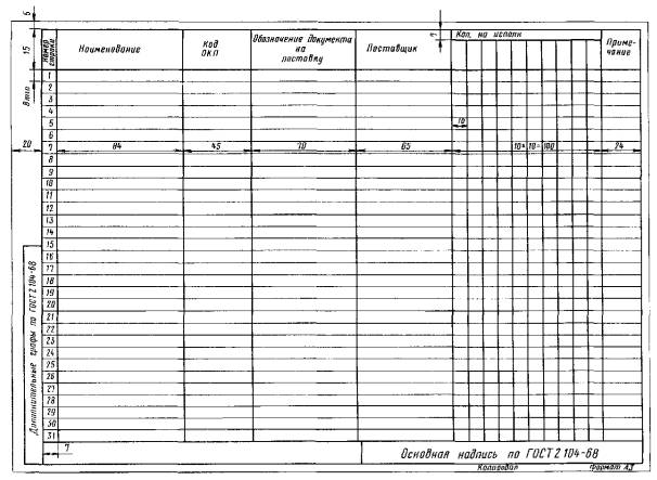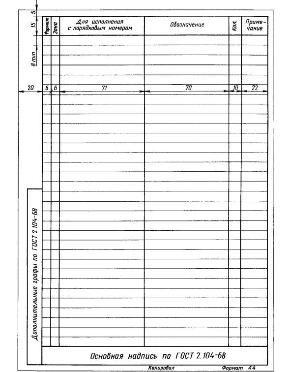 Допускается таблицу исполнений помещать на последующих листах чертежа (схемы), например, если она занимает много места и ее размещение на первом (или на одном) листе нецелесообразно из-за значительного увеличения формата. В этом случае над основной надписью первого листа должна быть запись по типу: «Таблицу исполнений см. на листе 3».