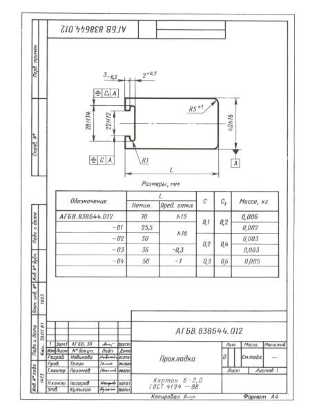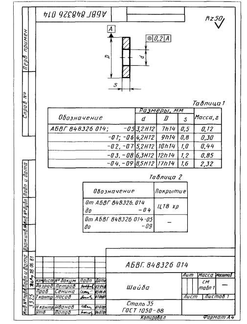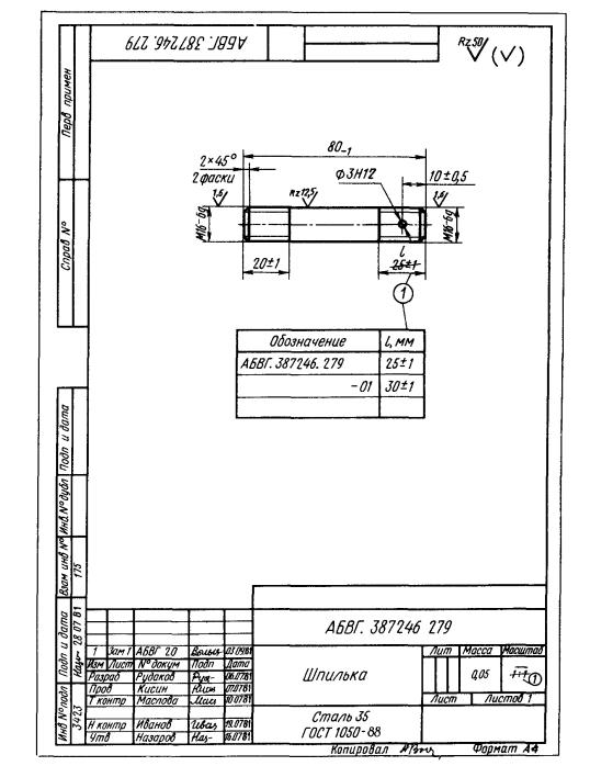 4.1.10. Если материал, литера или масса переменные, то их значения следует указывать в таблице исполнений, а в соответствующих графах основной надписи следует дать ссылку: «См. табл.», (см. приложение 11).