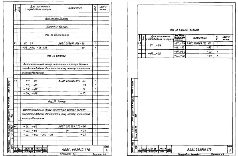 Если одинаковые данные относятся к нескольким исполнениям, обозначения которых не составят непрерывного ряда, то обозначения исполнений допускается записывать по типу: