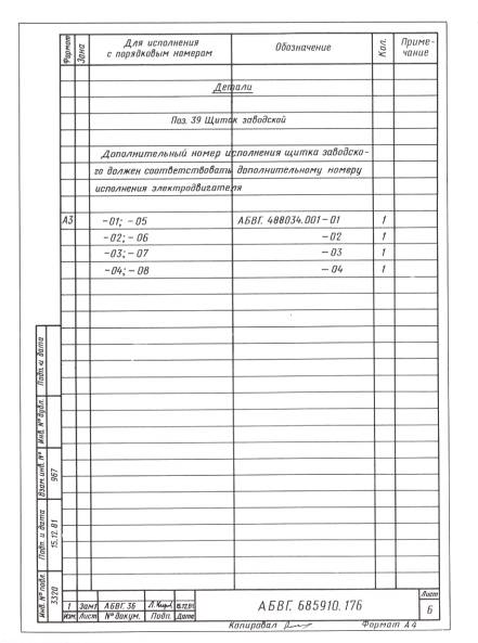 4.1.11. Таблица исполнений должна быть помещена на поле чертежа (схемы), как правило, на первом листе.
