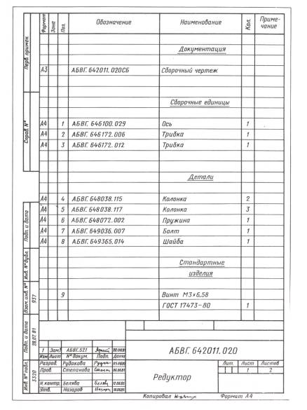 ОФОРМЛЕНИЯ ГРУППОВОГО ЧЕРТЕЖА ДЕТАЛЕЙ