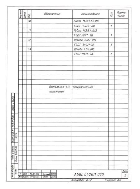 Вместо нескольких спецификаций исполнения допускается выполнять одну или несколько групповых спецификаций исполнения, каждая из которых будет содержать данные нескольких (но не всех) исполнений (см. приложение 5, черт. 2).