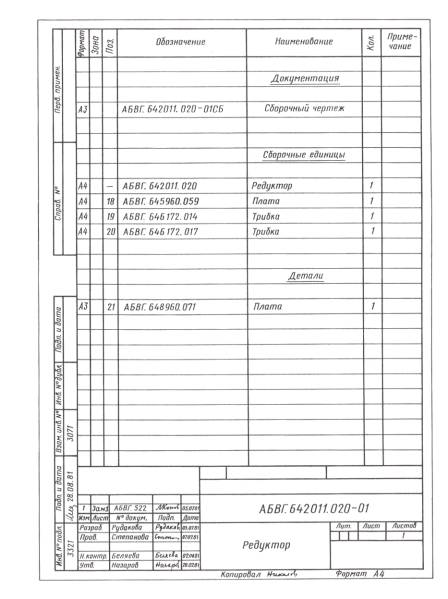 Вариант А является лучшим, когда одни и те же переменные данные не повторяются в нескольких исполнениях. Вариант А рекомендуется применять также при преобразовании единичной спецификации о групповую без замены ее новым подлинником.