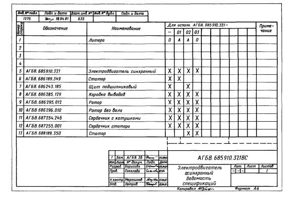 ПРИМЕР ОФОРМЛЕНИЯ ГРУППОВОЙ СПЕЦИФИКАЦИИ ПО ВАРИАНТУ Г С ПРИМЕНЕНИЕМ ДОПОЛНИТЕЛЬНЫХ НОМЕРОВ ИСПОЛНЕНИЙ (последующие листы)