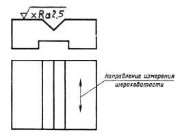 1.13. Если направление измерения шероховатости должно отличаться от предусмотренного ГОСТ 2789-73, его указывают на чертеже по примеру, приведенному на черт. 6.