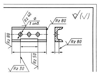 2.6. При указании одинаковой шероховатости для всех поверхностей изделия обозначение шероховатости помещают в правом верхнем углу чертежа и на изображении не наносят (черт. 12).