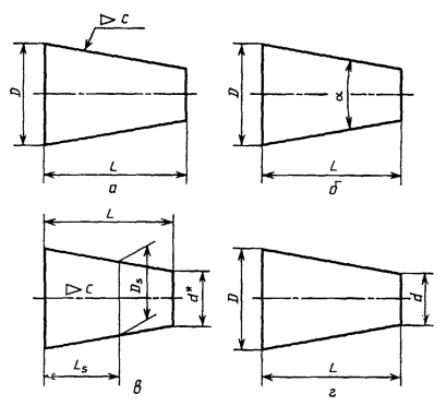 1.1. Величину и форму конуса определяют нанесением трех из перечисленных размеров (черт. 1):