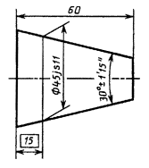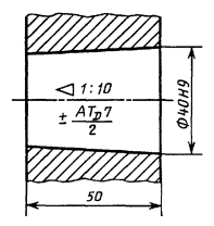 2.2. Предельные отклонения угла конуса, если конус определен конусностью, следует наносить непосредственно под обозначением конусности: