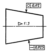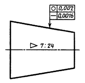 При указании допуска прямолинейности образующей на конусах с конусностью не более 1 : 3 допускается соединительную линию от рамки проводить перпендикулярно оси конуса (черт. 7).