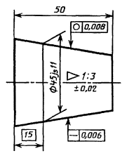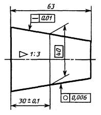 2.4. Допуски формы конуса (допуск круглости и допуски прямолинейности образующей) следует наносить в соответствии с требованиями ГОСТ 2.308-79 (черт. 6).