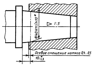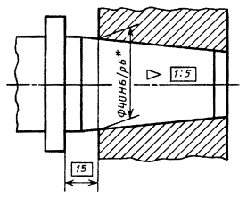 3.1. При посадке с фиксацией путем совмещения конструктивных элементов сопрягаемых конусов размеры, определяющие характер соединения, на сборочном чертеже могут быть указаны только как справочные (черт. 12).