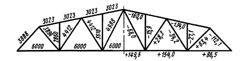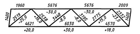 8. При необходимости на геометрическую схему, кроме размеров, наносят расчетные усилия с соответствующими знаками. Усилия указывают под линиями схемы (черт. 4).