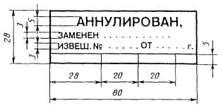 3. Штамп ²АННУЛИРОВАН, ЗАМЕНЕН..., извещ. №... от ... г." ставят (с указанием номера, даты выпуска извещения и подписи) на аннулированных по извещениям подлинниках, дубликатах и копиях, а также на карточках учета. При отсутствии замены ставят прочерк.