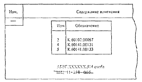 2.4. Внесение изменений зачеркиванием размеров, знаков, надписей, отдельных слов и строк производят сплошной тонкой линией с проставлением новой информации в непосредственной близости от зачеркнутого.