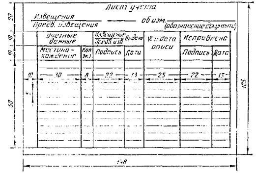 7.1. Лист учета извещения и предварительного извещения (далее - лист учета) предназначается для учета рассылки копий ИИ или ПИ внешним абонентам документов, изменяемым по данным ИИ или ПИ, и подразделениям данного предприятия, а также для учета проведения изменений по ИИ или ПИ на данном предприятии.