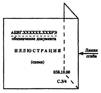 Б.1.19 При расположении иллюстрации на листе увеличенного формата фальцовка листа должна обеспечивать видимость номера страницы, как это показано на рисунке Б.1. Незаполненная страница (обратная сторона фальцованного листа) должна быть обозначена на предыдущей странице в виде дроби (с. 3/4).