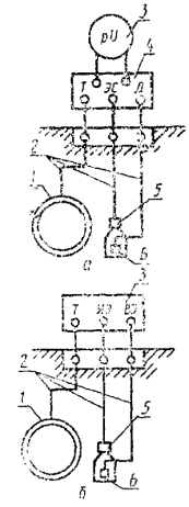1.5.2. Измерение поляризационного потенциала при помощи прерывателя тока (черт. 9 а и черт. 10 а) проводят следующим образом: к соответствующим клеммам прерывателя тока присоединяют контрольные проводники от трубопровода, датчика, электрода сравнения и вольтметр; включают прерыватель тока; через 10 мин. после включения прерывателя тока измеряют потенциал через каждые 5 с.