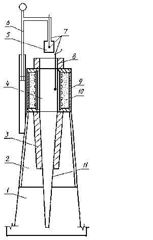 2.5. Испытания на воспламенение пылевоздушной смеси проводят при заведомо зажигающей энергии, дающей вероятность воспламенения от 0,1 до 0,6. При этом величина разрядного промежутка равна 4 мм, расстояние между ситом и электродами равно 10 мм.