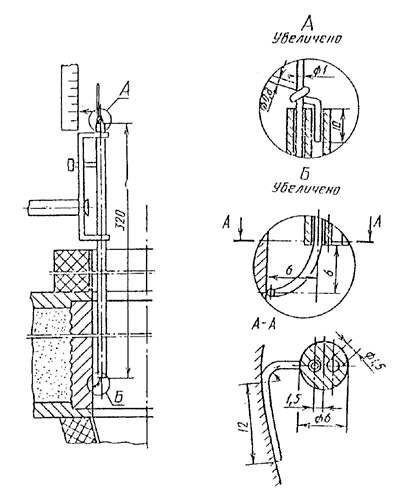 1.2. Электроды искрового источника зажигания, представляющие собой стержни из нержавеющей стали диаметром не более 3 мм, длиной не менее 20 мм. Электроды закреплены горизонтально и соосно друг к другу. Угол заточки электродов должен быть не более 15°, расстояние между электродами составляет 2 - 6 мм и регулируется дискретно с шагом 1 мм и погрешностью ±0,1 мм.