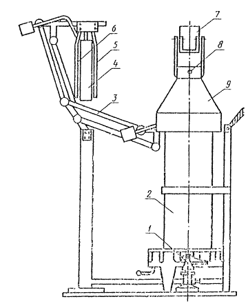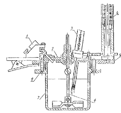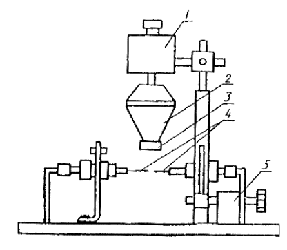 1 - вибратор; 2 - распылитель; 3 - сетка; 4 - электроды зажигания; 5 - регулятор межэлектродного расстояния.