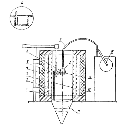 2.4.3. Сущность метода определения температуры самовоспламенения заключается во введении определенной массы вещества в нагретый объем и оценке результатов испытания. Изменяя температуру испытания, находят ее минимальное значение, при котором происходит самовоспламенение вещества.