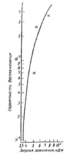 3.1. За минимальную энергию зажигания исследуемой пылевоздушной смеси принимают значение энергии зажигания, соответствующее вероятности воспламенения 0,01.