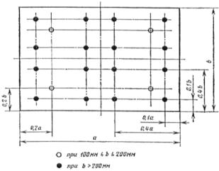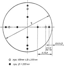 1.3. Координаты точек измерений давлений и скоростей, а также количество точек определяются формой и размерами мерного сечения по черт. 1 и 2. Максимальное отклонение координат точек измерений от указанных на чертежах не должно превышать ±10 %. Количество измерений в каждой точке должно быть не менее трех.