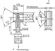 б) приемник полного давления - для измерения полных давлений потока при скоростях движения воздуха более 5 м/с (черт. 4);