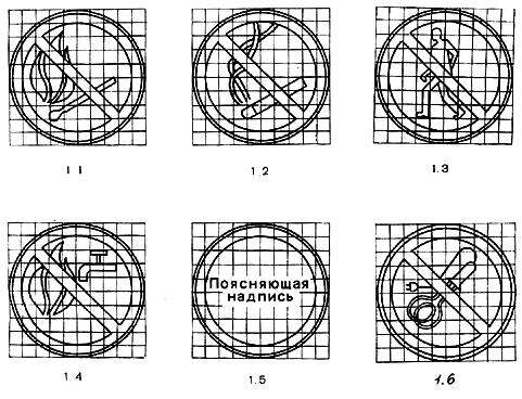 Запрещение, непосредственная опасность, обозначение пожарной техники |