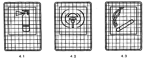 ж) обозначения различных видов пожарной техники или ее элементов, требующих оперативного опознавания (пожарные машины, наземные части гидрант-колонок, огнетушители, баллоны и пусковые устройства установок пожаротушения, ручные пожарные извещатели и т. п.), а также средств общетехнического назначения, используемых в целях обеспечения пожарной безопасности (насосы спринклерных и дренчерных установок пожаротушения, клапанов внутренних пожарных кранов, телефоны прямой пожарной связи, ведра и лопаты в составе пожарных щитов и стендов и т. п.);