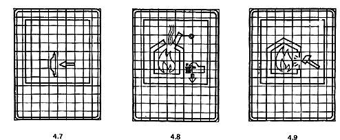з) обозначения площадей, которые в целях оперативной эвакуации должны быть всегда свободными (площадки у эвакуационных выходов и подходы к ним, у мест подачи пожарной тревоги и др.). Границы этих площадей следует обозначать сплошными линиями желтого сигнального цвета шириной от 50 до 100 мм, а сами площади штриховкой пола полосами желтого сигнального цвета шириной от 50 до 100 мм под углом 45°;