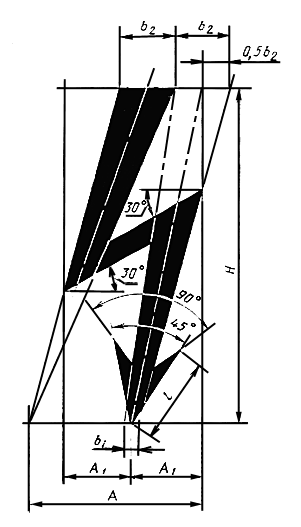 Высота H символа должна быть от 6 до 1000 мм. Остальные размеры символа следует определять следующими соотношениями: