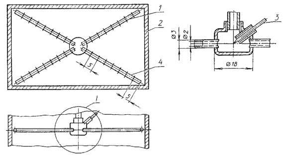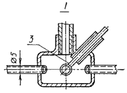 1 - устройство для отбора проб; 2 - канал отвода продуктов сгорания; 3 - термометр; 4 - отверстия диаметром 0,5 мм