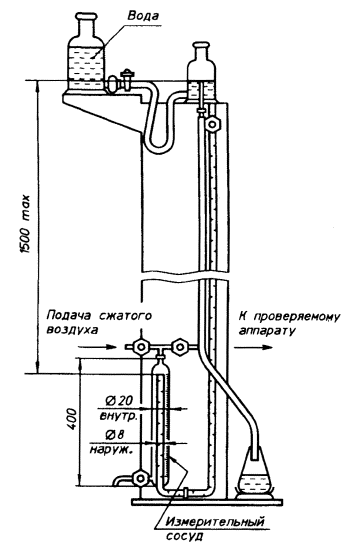 Проверку следует проводить с помощью воздуха давлением 15 кПа.