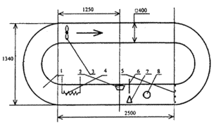 При подготовке к испытаниям извещатель устанавливается на плиту, после чего доска крепится к жесткой раме. Затем молоток тщательно балансируется путем подстройки противовеса при удаленном рабочем весе. После этого молоток отводится от извещателя на угол 3/2p (ручка молота переводится в горизонтальное положение) и устанавливается рабочий вес. При освобождении сборки рабочий вес вращает молот на угол 3/2p. Масса рабочего веса, необходимая для создания энергии удара 1,9 Дж, равна 0,388/3 r, где r - радиус ворота в метрах.